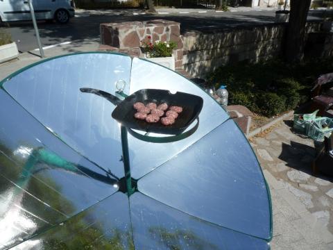 Изключително доволен съм от тези уреди - малкия котлон и соларната фурна. Вкусна храна и става горе-долу за същото време както с електрическа печка. Например свинско с картофи - за два часа. На котлона с огледалото задуших месото в тенджера нарязано на малки парчета. След това добавих картофите. Един съвет - задушавайте месото, не го варете, когато използвате соларни прибори. Става по-бързо и по-вкусно. Можете и да комбинирате котлона с фурната. Ако искате печено, първо варите месото в тенджера на котлона, после го слагате в тавичка, добавяте ориз и подправки и го печете във фурната. Ако почнете в 10 до 13:30 ч сте готови. Единственото, което ви трябва е Слънце!
