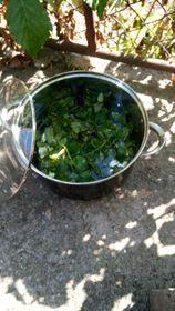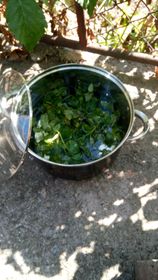 Ментата расте на двора – виж снимката. Измива се добре, слага се в буркани с вода. Бурканите се изваряват 1 час на соларния котлон. В буркана се получава концентрат от мента. При отваряне на буркана за консумация, концентратът се разрежда с 3 литра вода.