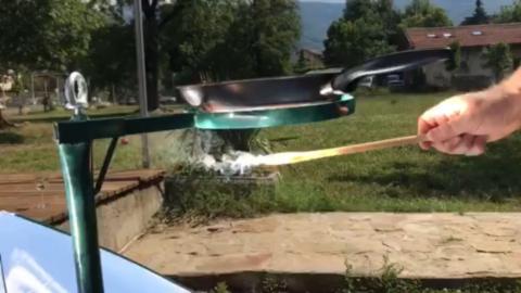 Както се вижда на снимките, лъча се концентрира много добре върху дъното на тигана и температурата се покачва за секунди!